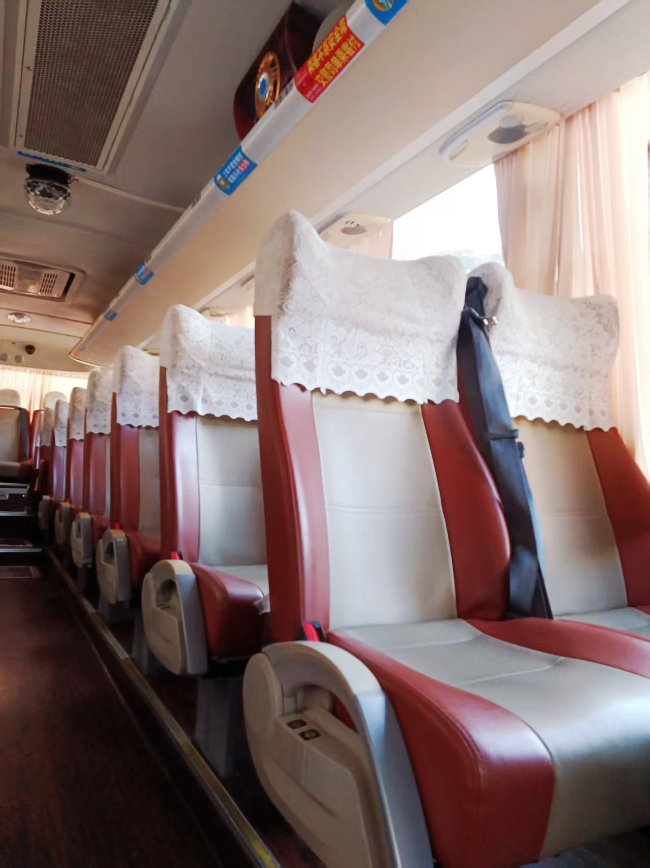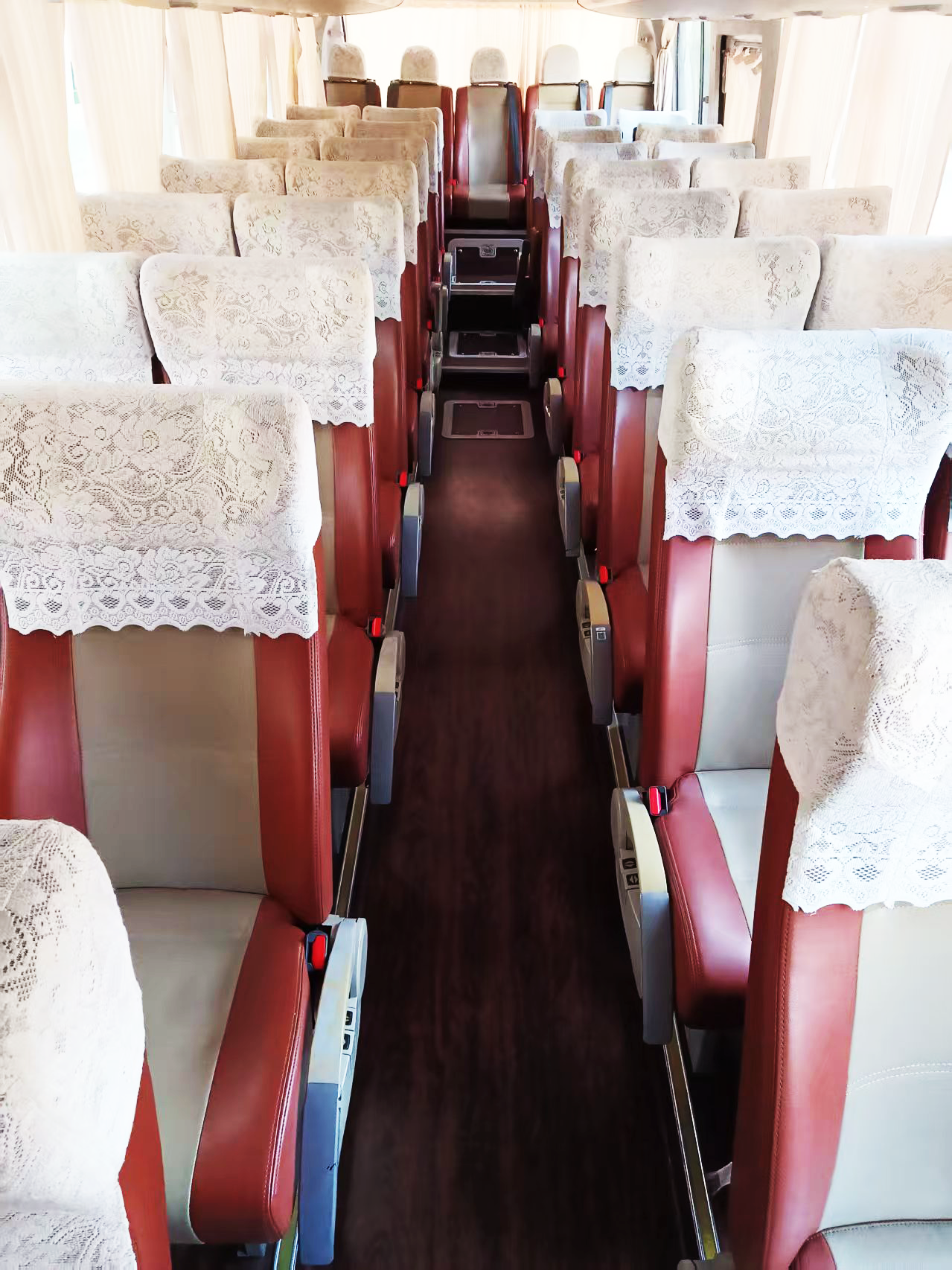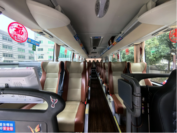 适用于大型团体出行、企业班车、旅游包车等场景, 车内空间宽敞,乘坐舒适。